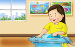 ส่วนคุณแม่กำลังรีดผ้าอยู่ที่บ้าน