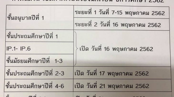 แจ้งกำหนดการเปิดภาคเรียน อ.1 ระยะที่ 1 เปิด 7 พ.ค.63 ถึง 15 พ.ค.63 ระยะที่ 2 เปิด 18 พ.ค.63 ป.1 เปิด 18 พ.ค.63 IP1-6 เปิด 18 พ.ค. 63 ม.1-3 เปิด 18 พ.ค. 63 ป.2-3 เปิด 19 พ.ค. 63 ป.4-6 เปิด 20 พ.ค. 63 อ.2-3 เปิด 21 พ.ค. 63 ตั้งแต่ 12 พ.ค.63 เป็นต้นไปนักเรียน อ.2 ถึง ม.3 สามารถตรวจสอบรายชื่อนักเรียน ห้องเรียนและผังตึกเรียนได้ที่เว็บไซต์ รร.นะคะ
