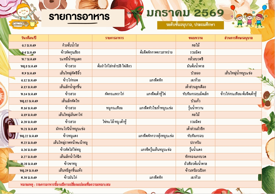 รายการอาหาร ประจำเดือน มกราคม 2569 2026-01-052026-01-05 sr400 ข่าวสารกิจกรรม, รายการอาหาร Continue reading
