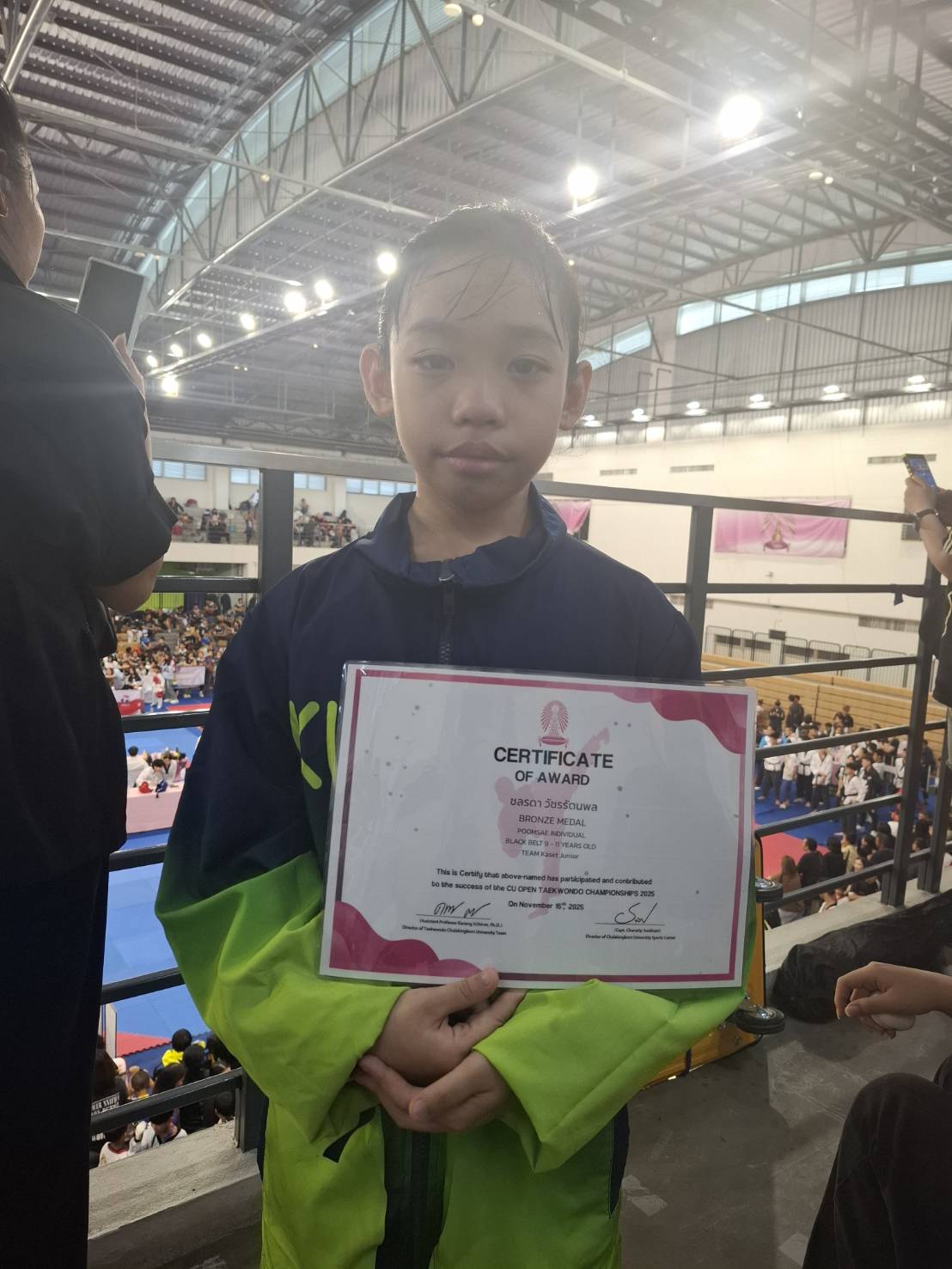🏆 ได้รับรางวัล 1 เหรียญทองแดง พุมเซ่ รุ่นอายุ 9-11 ปี สายดำ