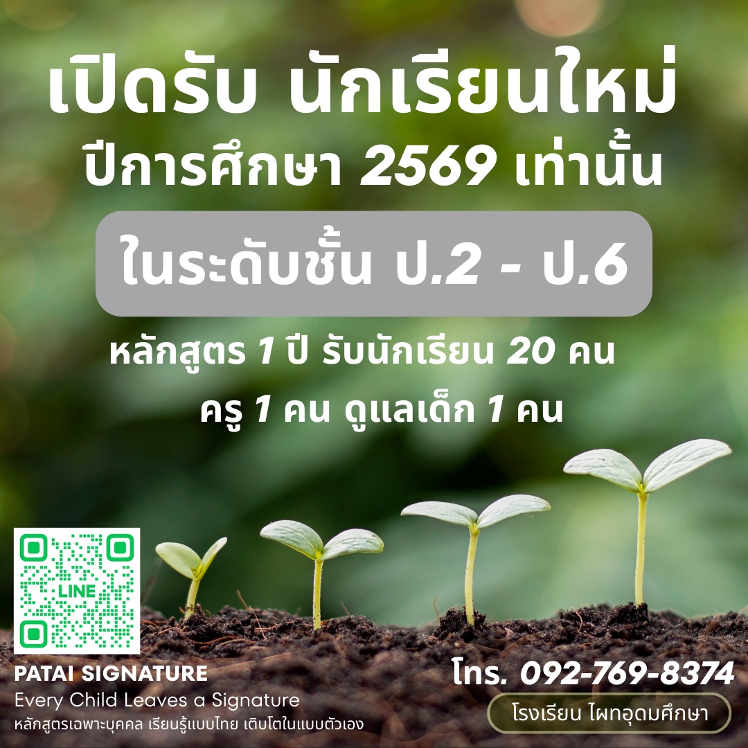 เปิดรับนักเรียนใหม่ 20 คน ป.2 – ป.6